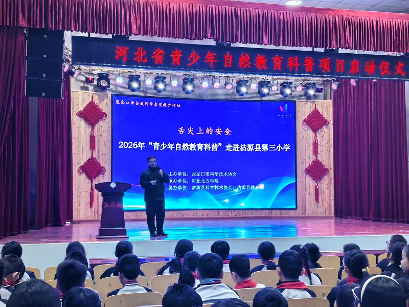 启动仪式后,科普课堂同步走进沽源县第三小学、第六小学。河北北方学院讲师团队为小学生们带来生动有趣的自然科普知识,魏东以“舌尖上的安全”为题,从漂白鸡爪、苏丹红鸭蛋、敌敌畏火腿等问题食品入手,围绕食品安全开展专题科普,并告诫小学生远离学校门口的“垃圾食品”, 保护舌尖上的安全。